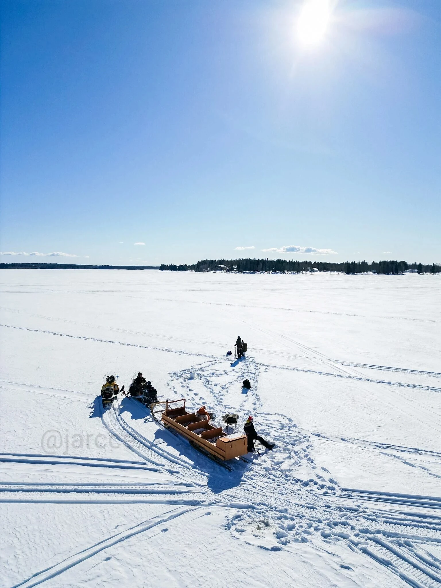 Duration: 5 hours (approx. 2 h snowmobiling total, 2 h ice fishing, 1 h dinner)