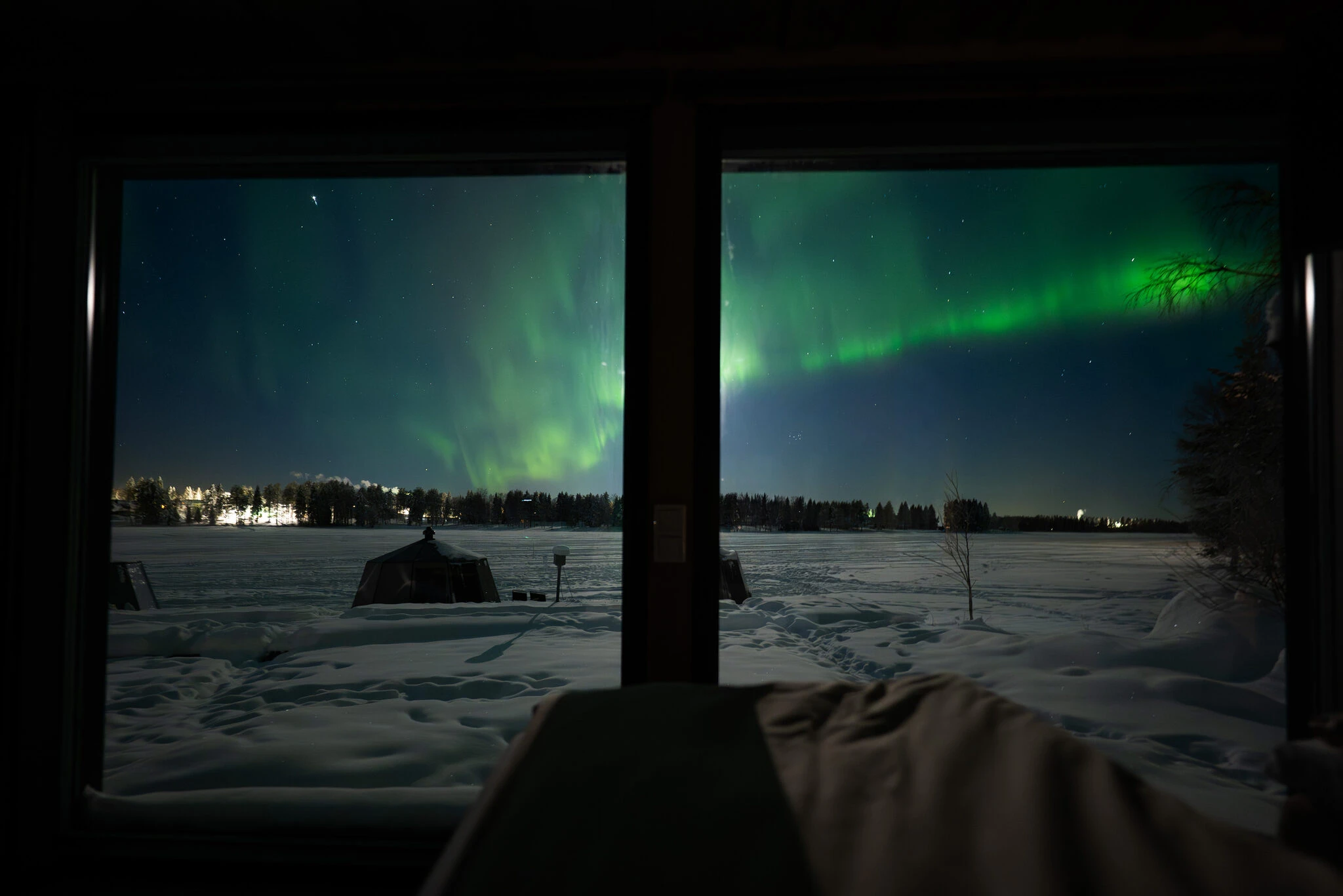 Aurora Lake Lodges – upea järvinäkymä ja revontulet sängyssä makoillen