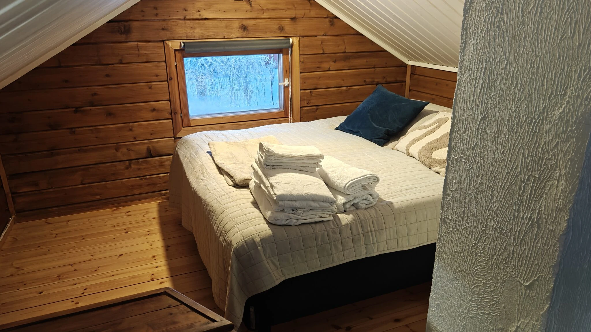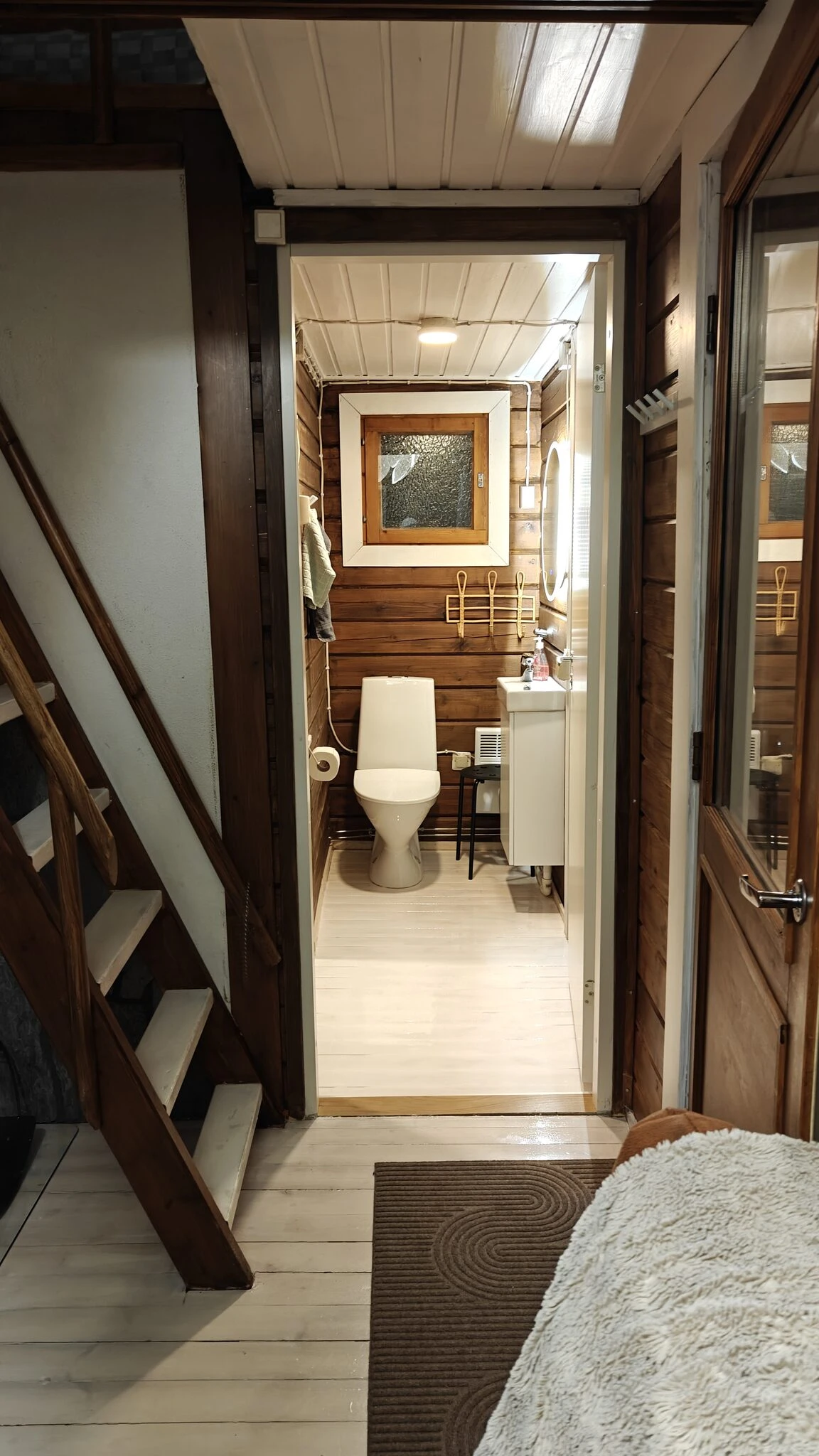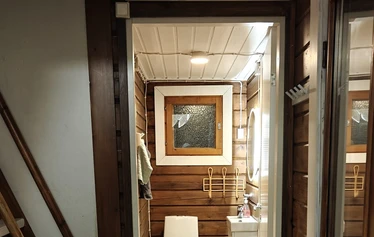 Mökissä on yksi makuuhuone, olohuone, täysin varustettu keittiö uuneineen ja mikroineen sekä moderni kylpyhuone bideellä. Terassilta avautuvat upeat jokinäkymät, ja viileinä iltoina voit rentoutua takkatulen ääressä tai nauttia löylyistä saunassa. Ilmastointi ja automaattinen lämmitys lisäävät viihtyvyyttä, ja ulkona käytössäsi on tunnelmallinen ruokailualue sekä nuotiopaikka ja grillivälineet lämpimiä kesäiltoja varten.