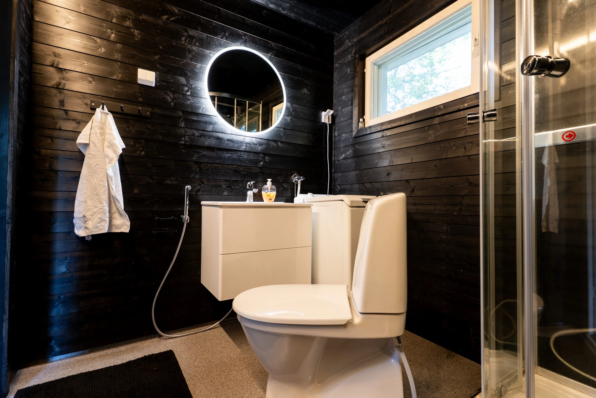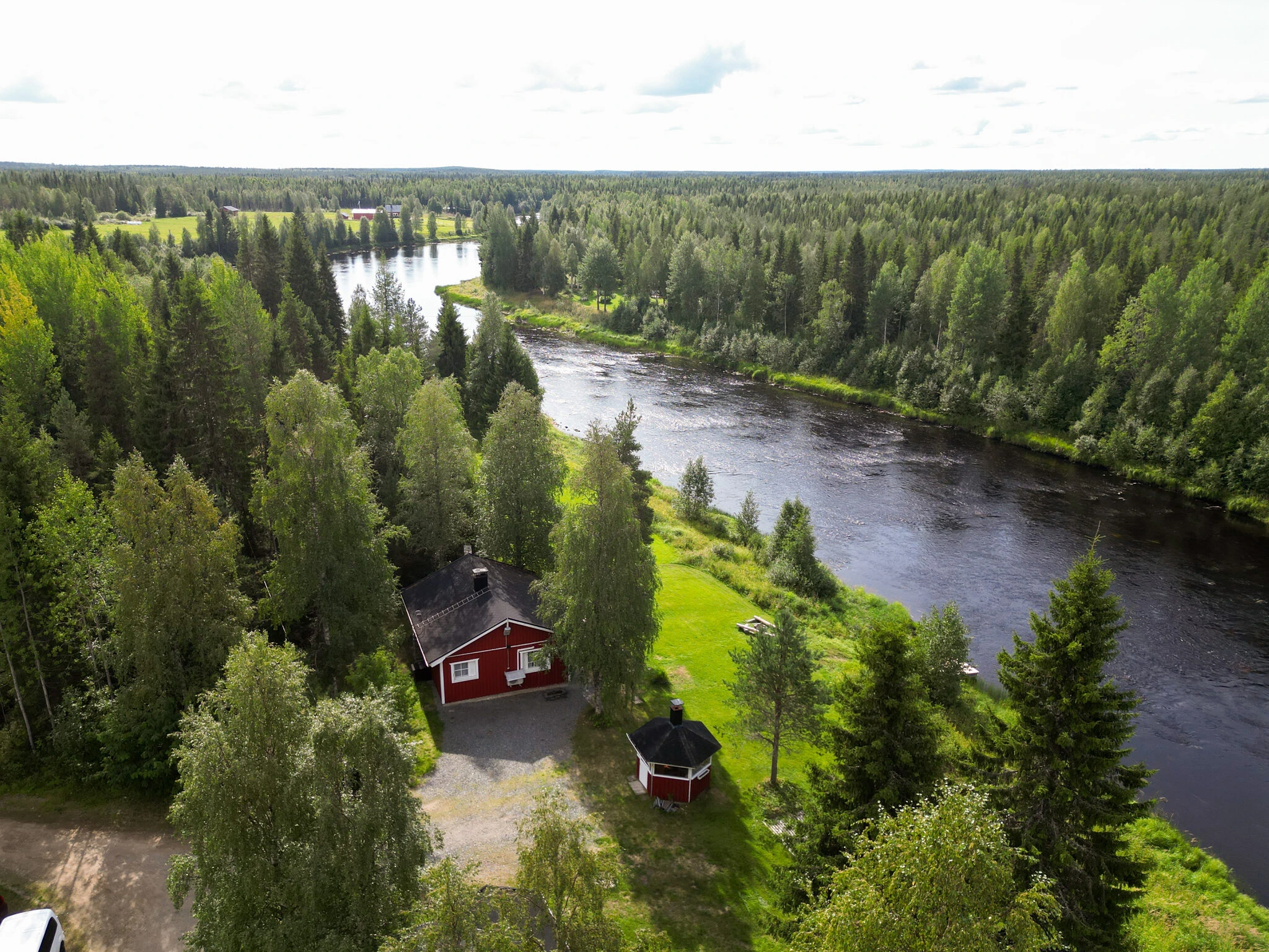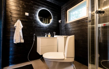Villassa on kaksi makuuhuonetta, tilava olohuone, täysin varusteltu keittiö astianpesukoneineen ja uuneineen sekä moderni kylpyhuone suihkukaapilla. Terassilta avautuvat upeat jokinäkymät, ja viileinä iltoina voit rentoutua takkatulen ääressä. Majoitustiloissa on myös ilmastointi ja automaattinen lämmitys, jotta lomasi olisi mahdollisimman mukava. Ulkona käytössäsi on viihtyisä ruokailualue, nuotiopaikka sekä grillausvälineet lämpimiä kesäiltoja varten.